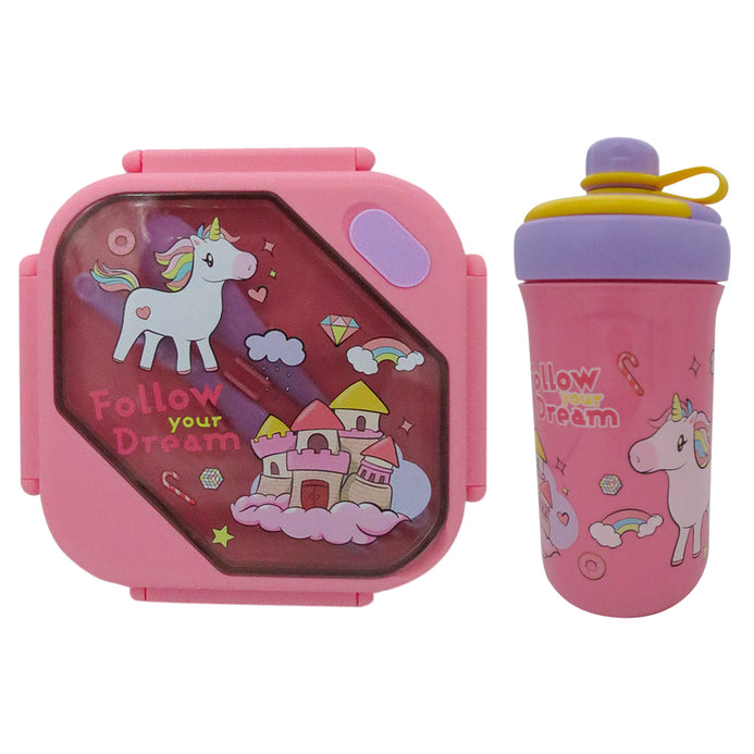 Haz que la hora del almuerzo sea divertida y práctica! Esta lonchera de 1100 ml incluye Termo ,Cuchara y tenedor, con diseño infantil de unicornio y castillo que motiva a las más pequeñas a disfrutar sus comidas. Ideal para el colegio, paseos o snacks en cualquier lugar.