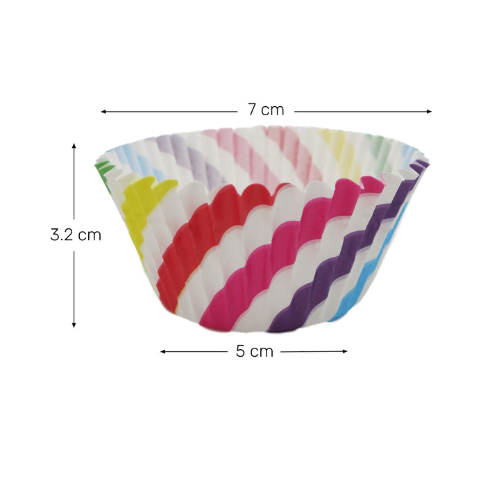 Disponible en un paquete de 100 unidades, estas cápsulas para hornear de tamaño estándar miden Diámetro de la base 5cm, Diámetro superior 7cm, Altura 3.2 cm