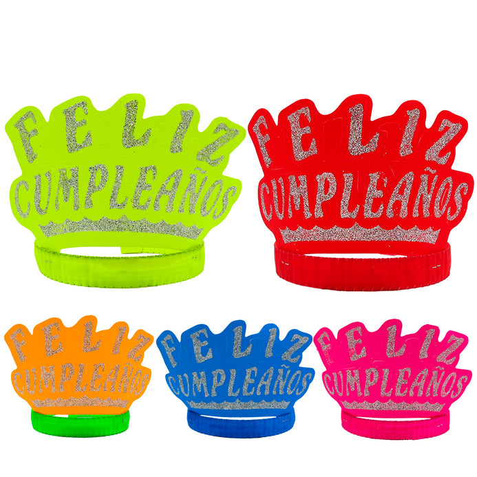 Diademas de Cartón Corona Neón Feliz Cumpleaños