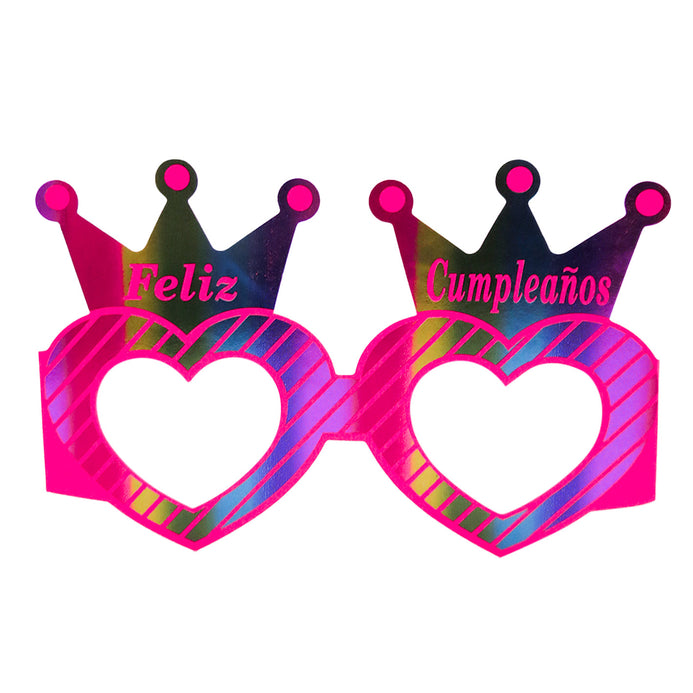 Gafa Neón Estampado Feliz Cumpleaños Corazón x 12 Unidades