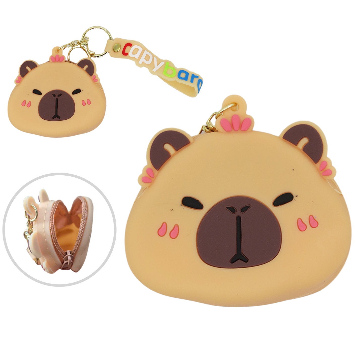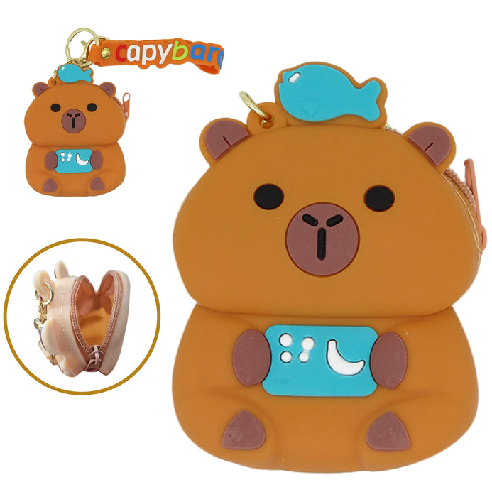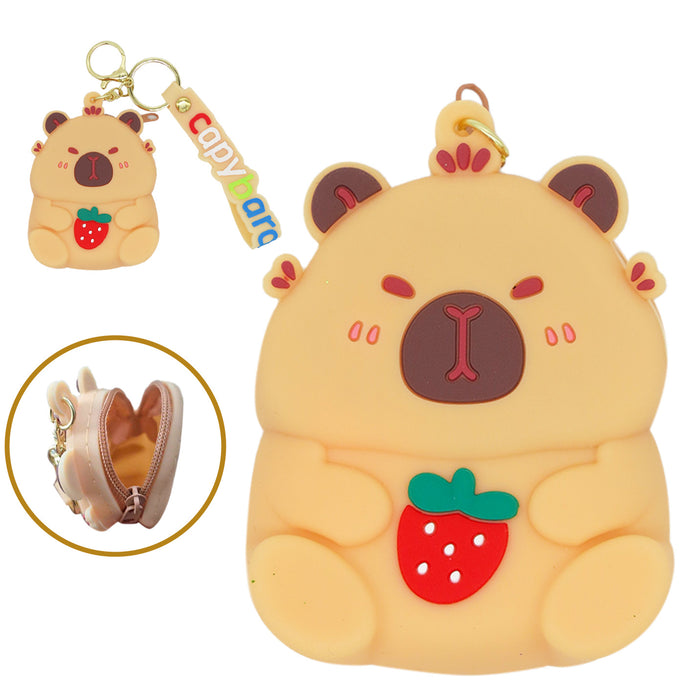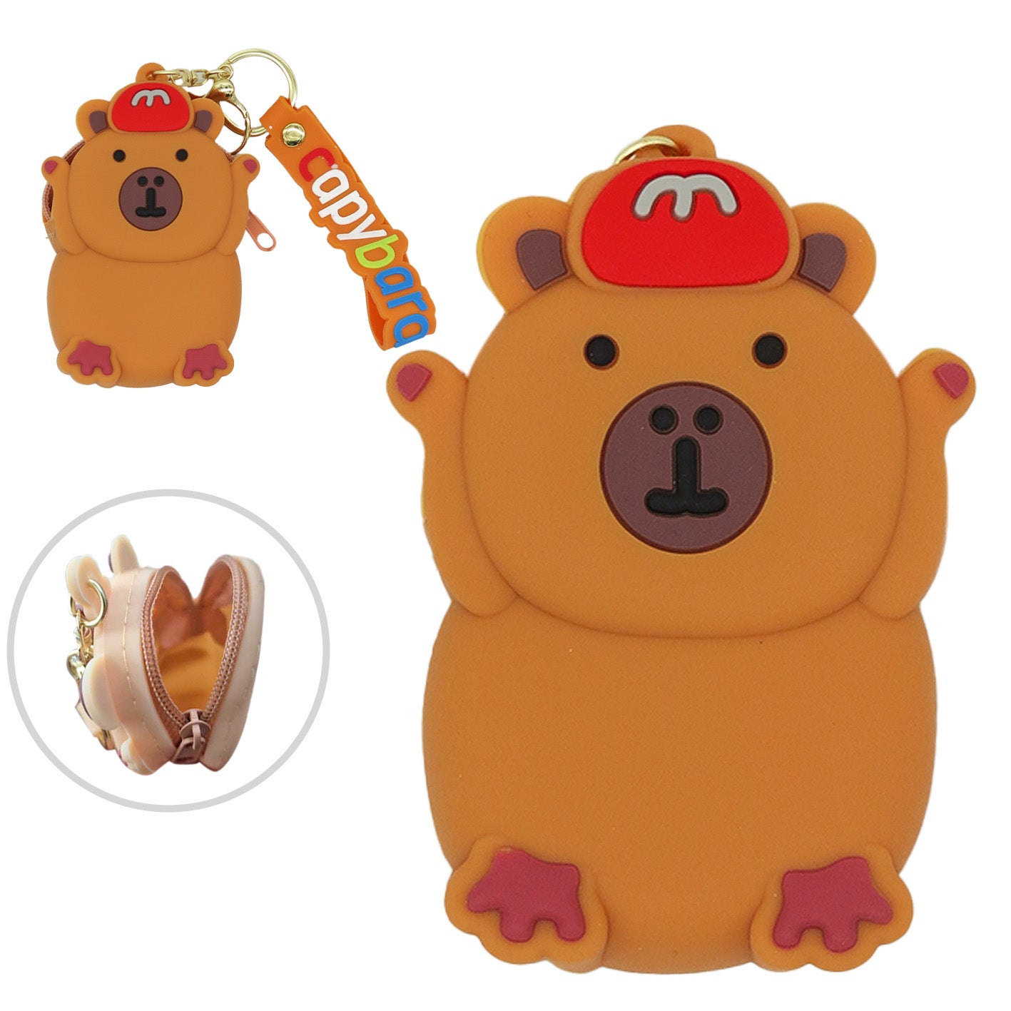 Monedero de silicón con diseño de capibara mini - Porta labiales multifuncional con cierre, funda para accesorios de teléfono, llavero y dije para mochila lavable a mano, estilo casual, para mujeres y Niñas.