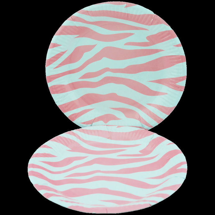 Plato Cartón Redondo Cebra Rosado 7" 9" x12