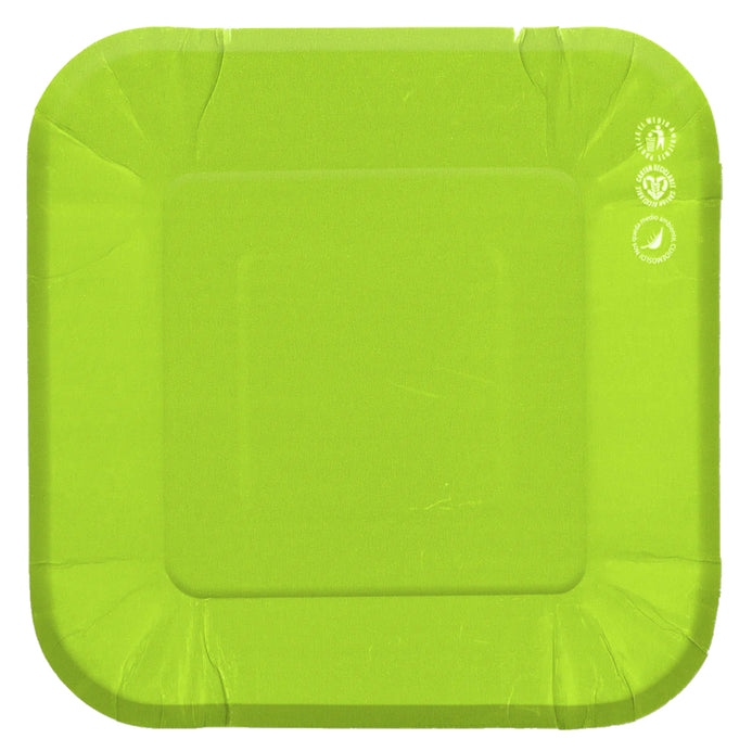 Plato Cartón Cuadrado 6" 8" Verde Limón x12