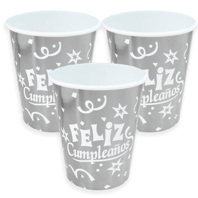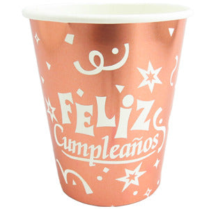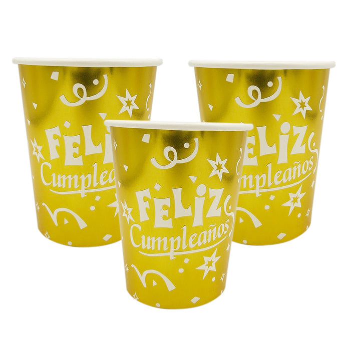 Vaso Cartón Metalizado Feliz Cumpleaños 8 Onzas x12