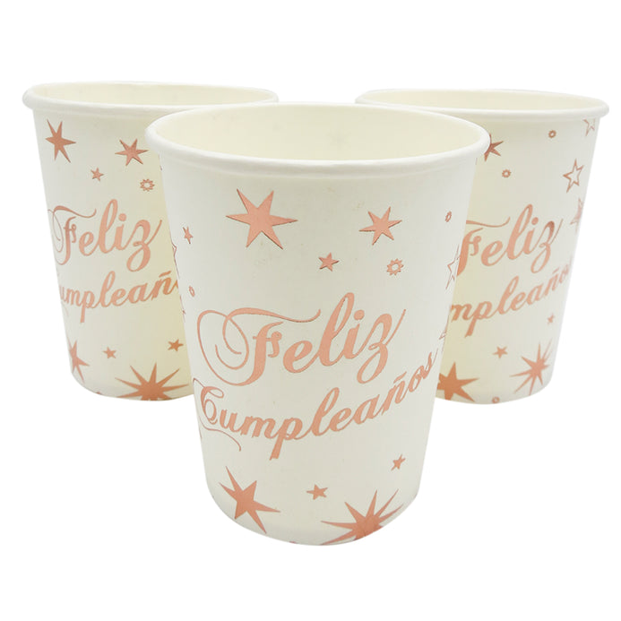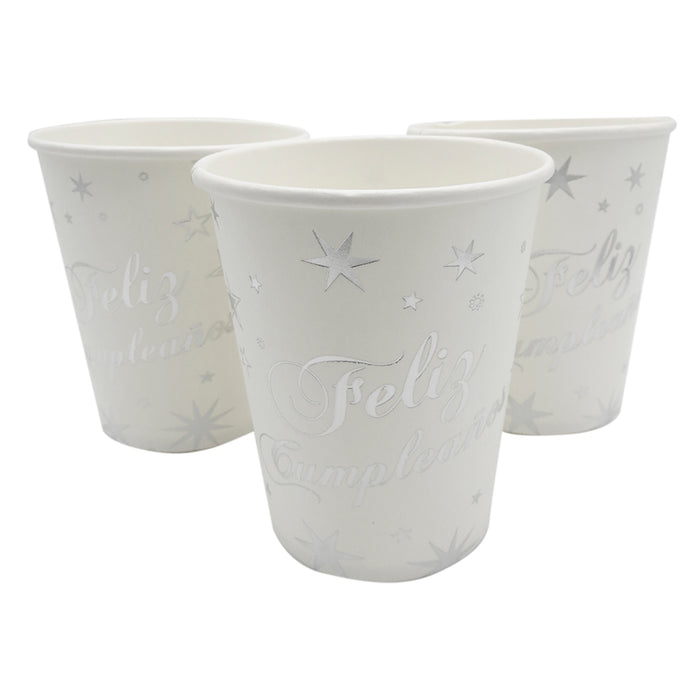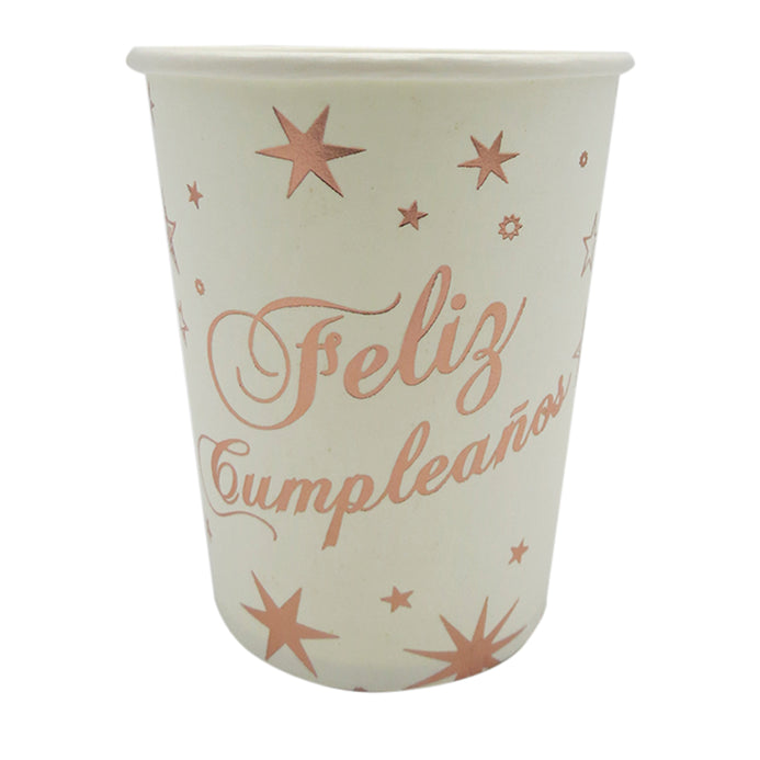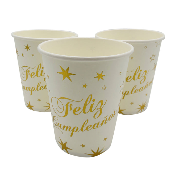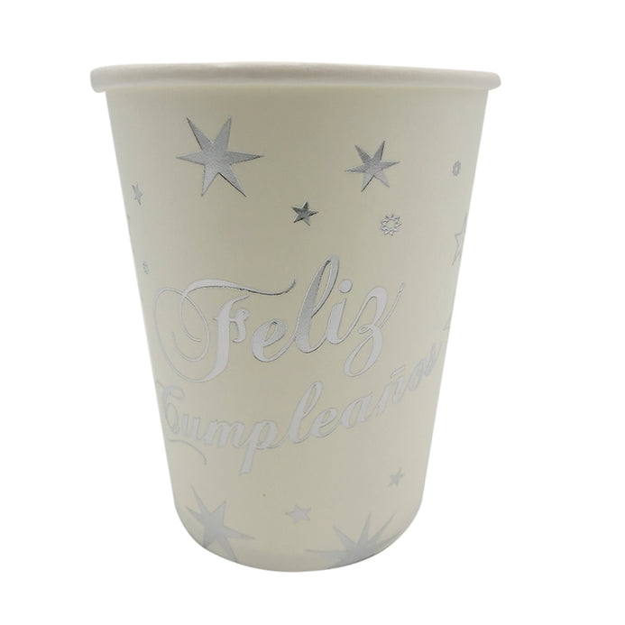 Vaso Cartón Metalizado Feliz Cumpleaños 8 Onzas x12