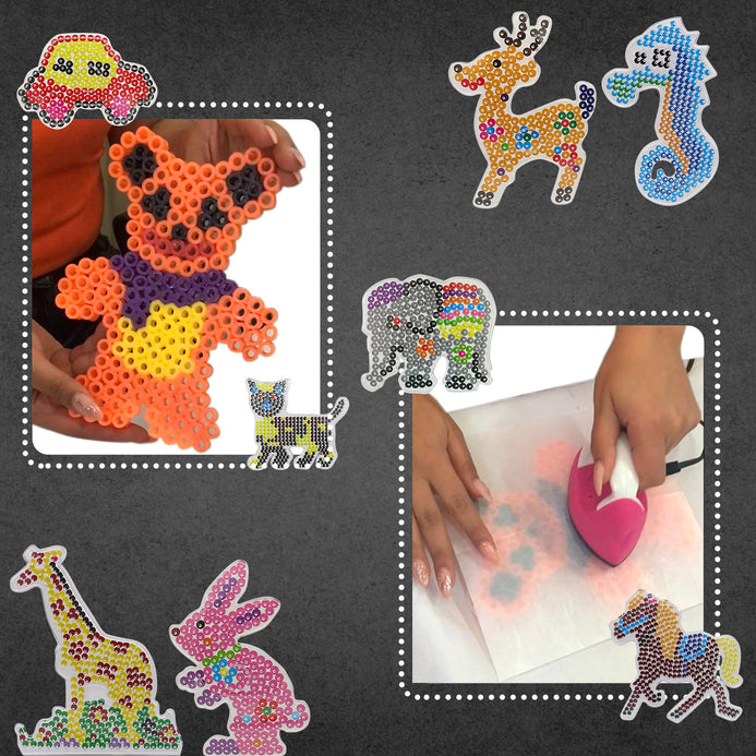 Los Hama Beads son pequeños tubos de plástico de colores que se unen con calor para crear diferentes figuras y una diversidad de usos diferentes (colgantes, llaveros, adornos, figuras en 3D, etc.)