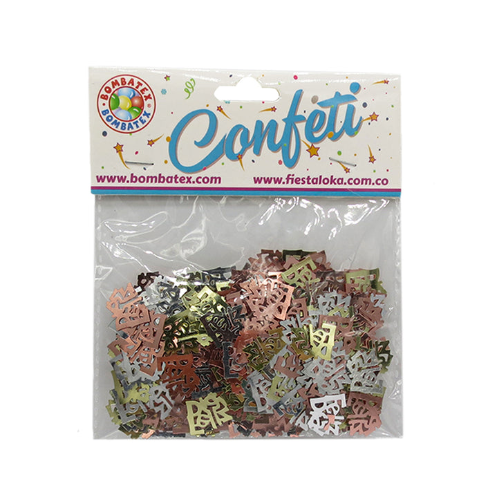 Confeti de Mesa Feliz Dia Metalizadas Dorado-Plata-Oro Rosa -Surtido