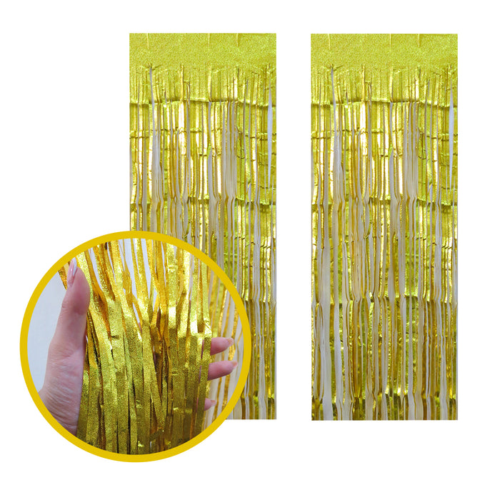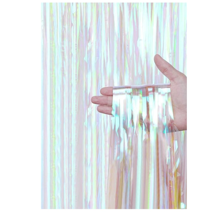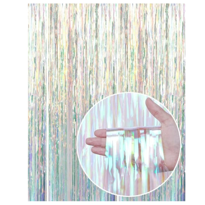 La cortina de aluminio está hecho de oropel con una superficie brillante, ideal para agregar brillo como decoración para fiestas. Material duradero le permite usar el fondo repetidamente.