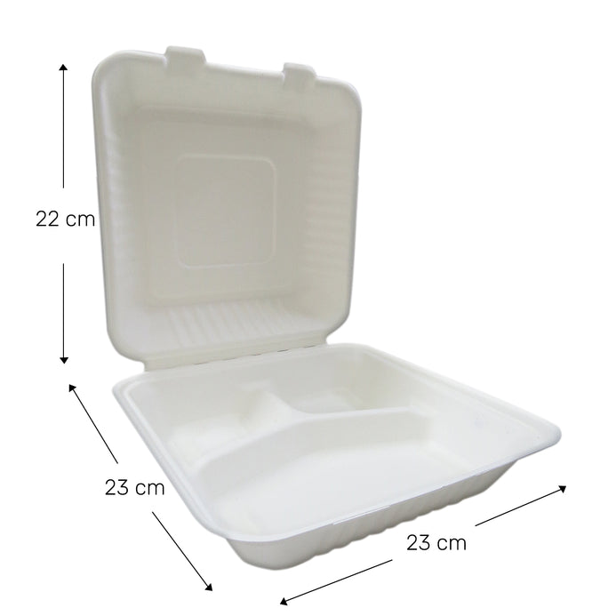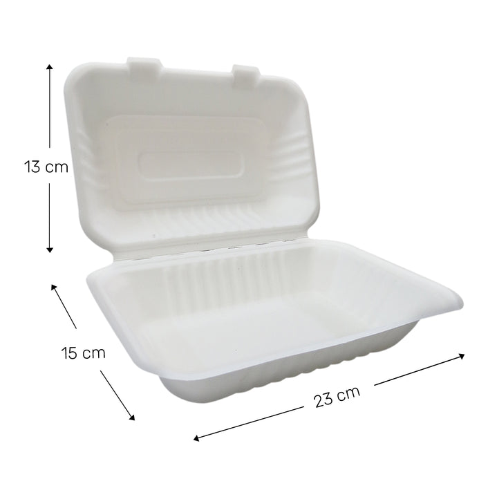 Respetuoso con el medio ambiente para la tierra: Estas cajas para llevar están hechas de 100% fibra de caña de azúcar, un material sostenible, biodegradable y compostable, y se pueden tirar directamente en su contenedor de abono después de su uso. Son una alternativa ecológica a los envases de plástico y espuma.