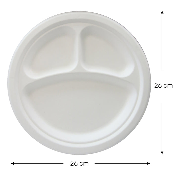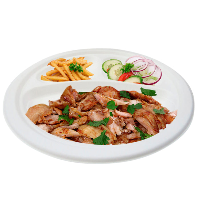 Eco-Productos Platos Redondos 3 compartimientos de Caña de Azucar x 12