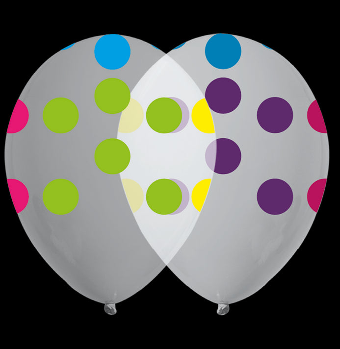 Globos Látex Biodegradables Cristal 360° Puntos Transparente Tinta Neón