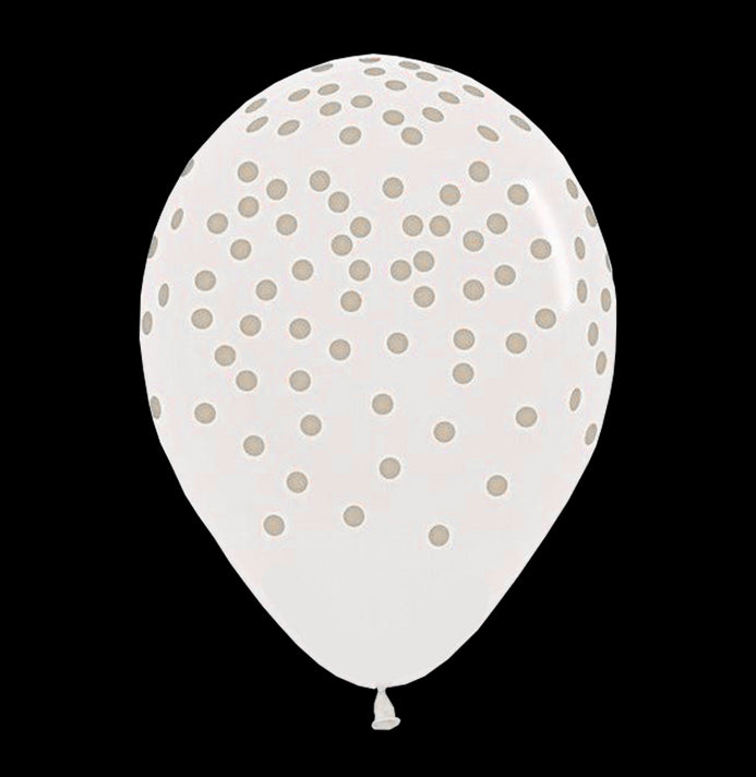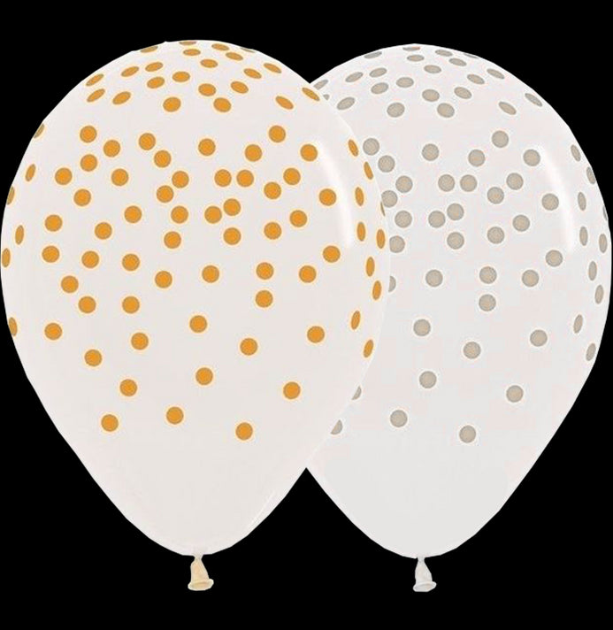 Globos Látex Biodegradables Cristal 360° Puntos Transparente Tinta Dorada y Plata