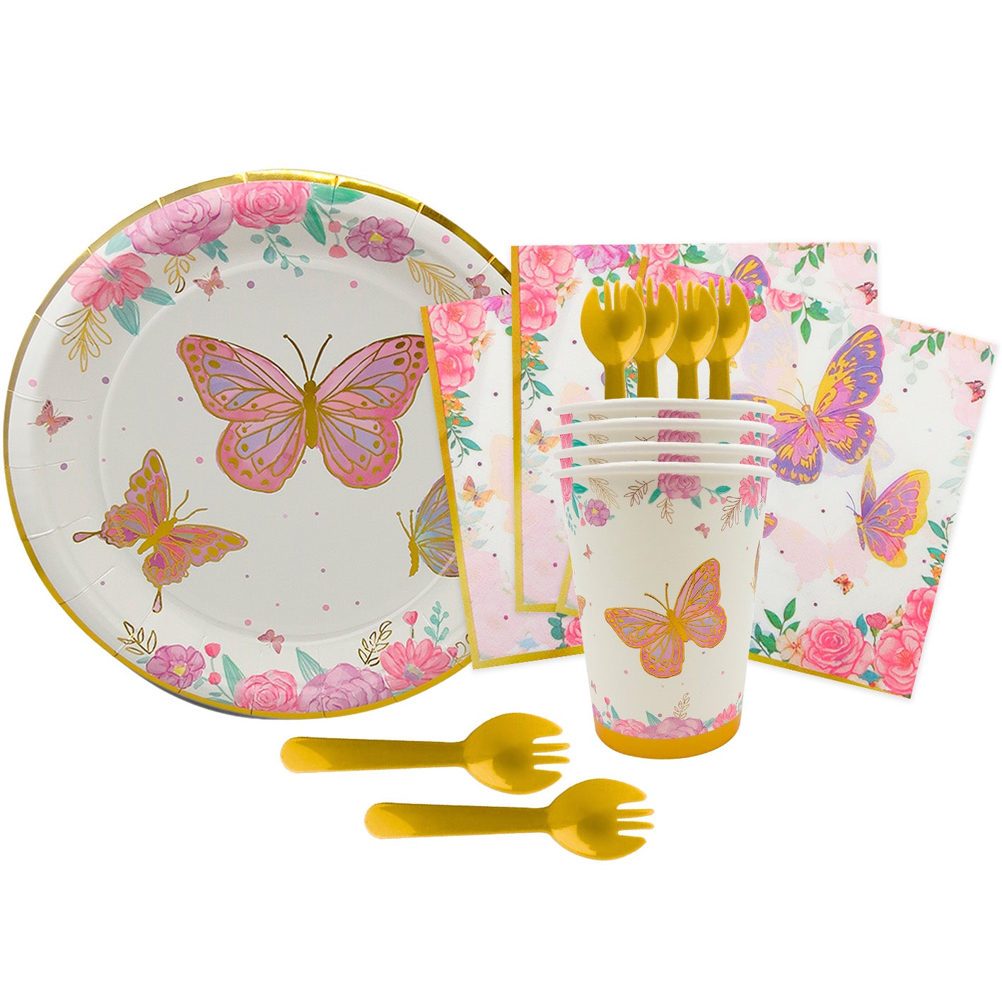 Kit (Cubiertos-Platos-Servilletas-Vasos) Mariposas