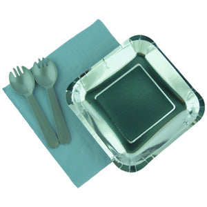 Kit de Platos con Servilleta y Cuchara Tenedor