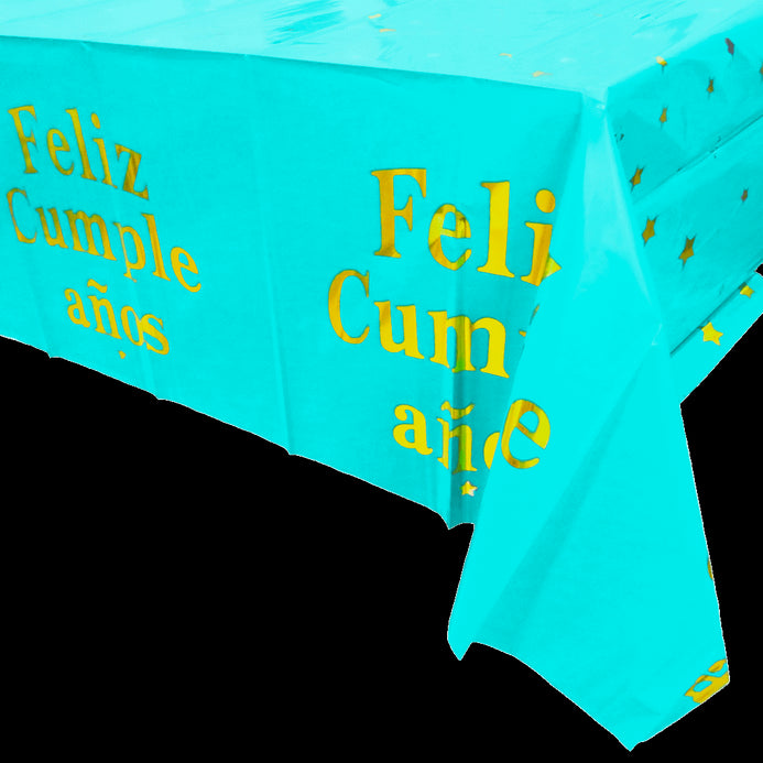 Mantel Metalizado Mate Feliz Cumpleaños Azul