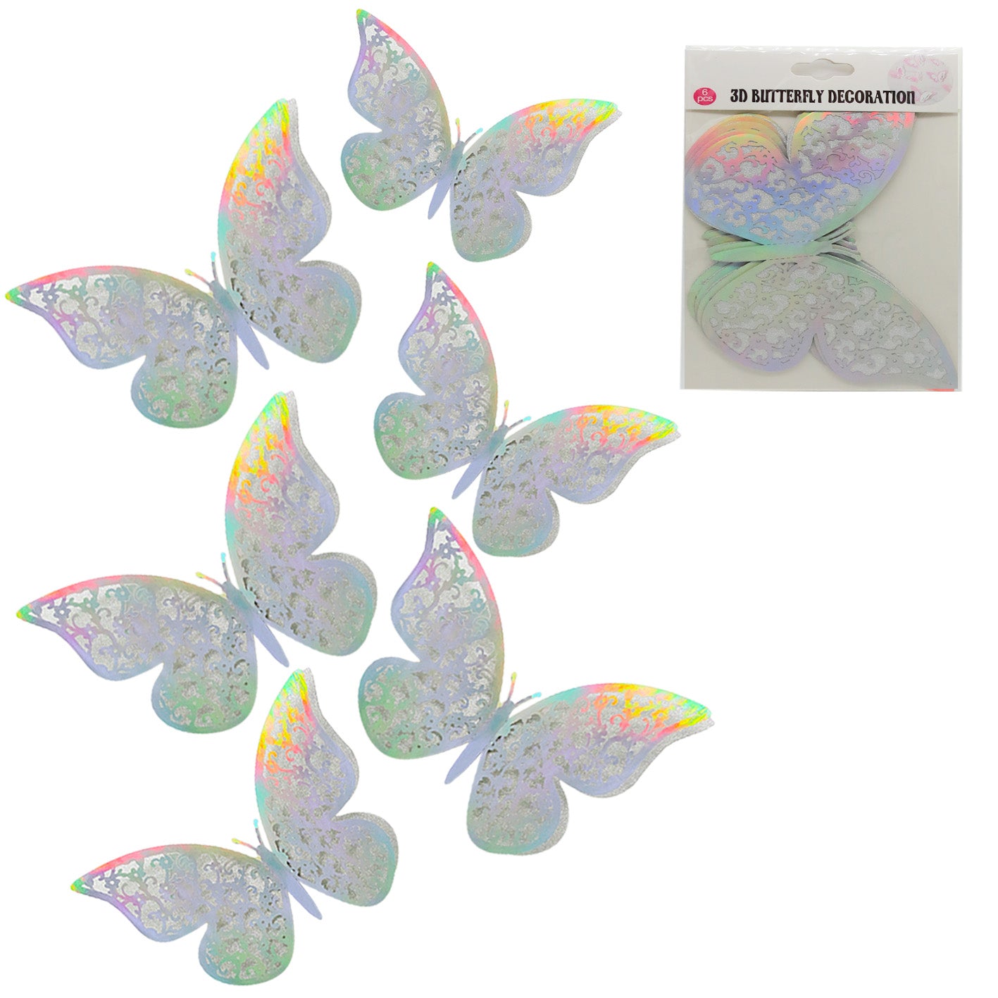 El paquete incluye: Recibirás 6 mariposas láser para decoración de pared en un Solo Tamaños 20 cm x 13 ancho por alto.. Además, hemos incluido 6 puntos adhesivos de doble cara para que la instalación sea muy fácil. Puede crear una pantalla impresionante y única que seguramente llamará la atención