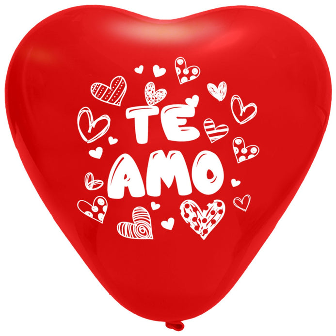 Globos Látex Biodegradables Corrientes Corazon Te Amo Rojo y Blanco
