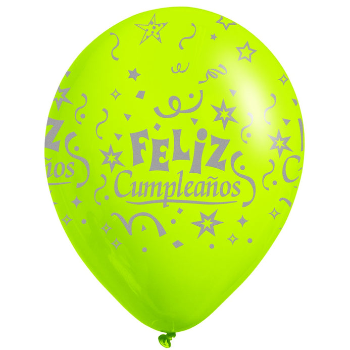 Globos Látex Biodegradables Corriente 360° Feliz Cumpleaños Surtido