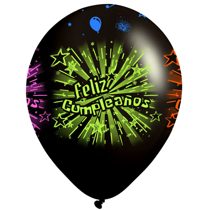 Globos Látex Biodegradables Corrientes 360° Feliz Cumpleaños Tinta Neón