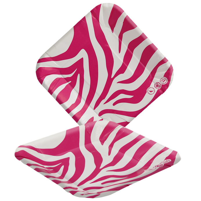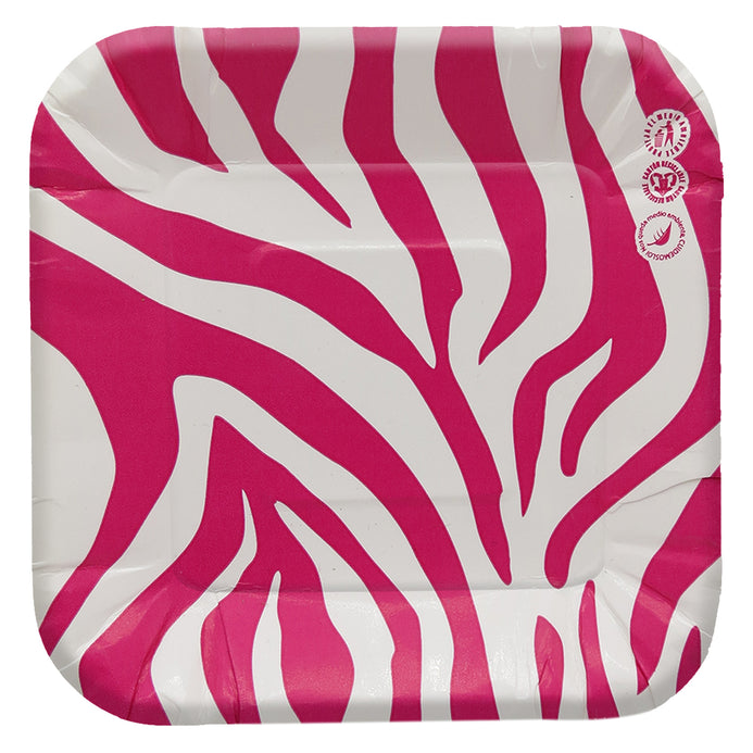 Plato Cartón Cuadrado Cebra 6" 8" Fucsia x12