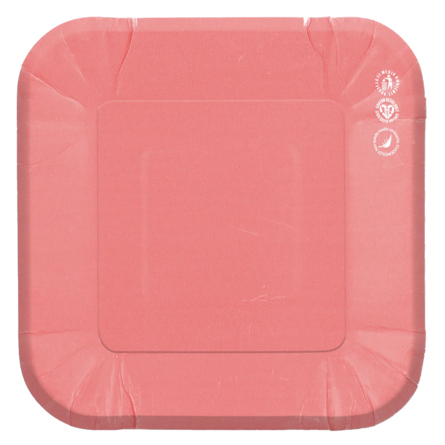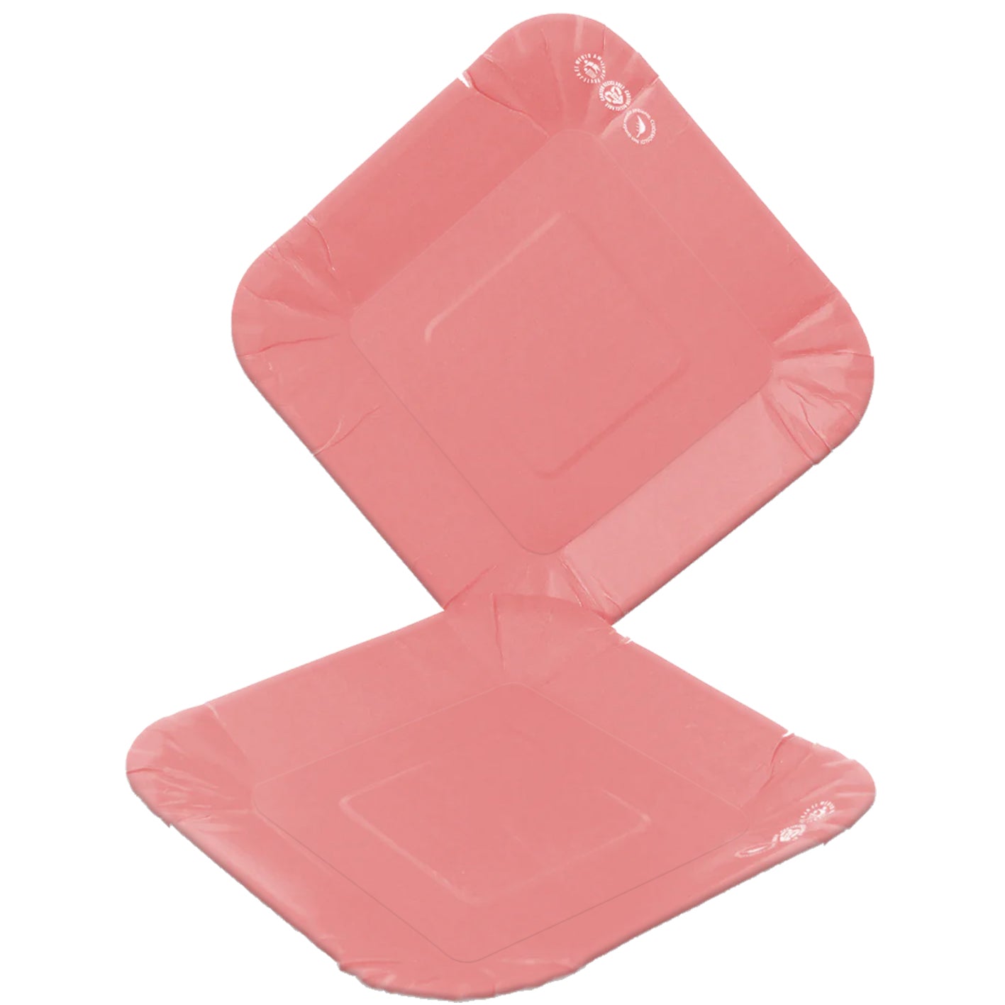Plato Cartón Cuadrado 6" 8" Rosado x12