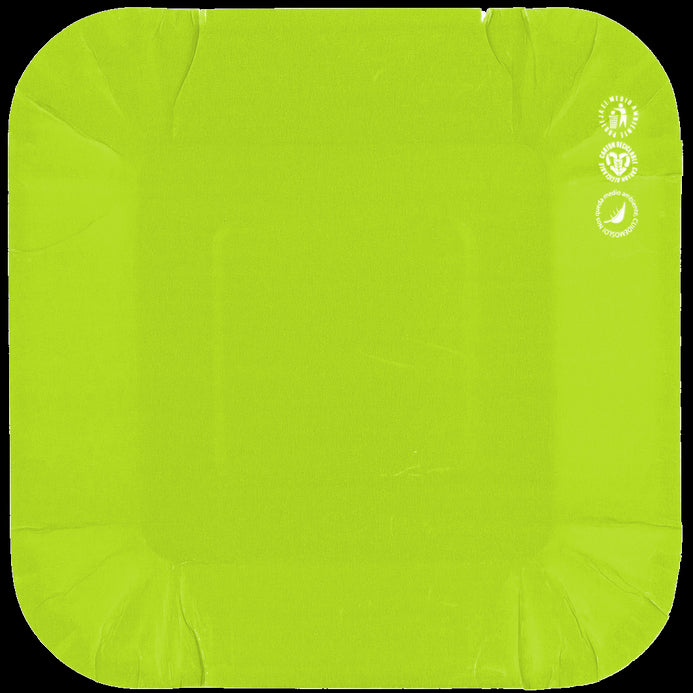 Plato Cartón Cuadrado Neón 6" 8" Verde x12
