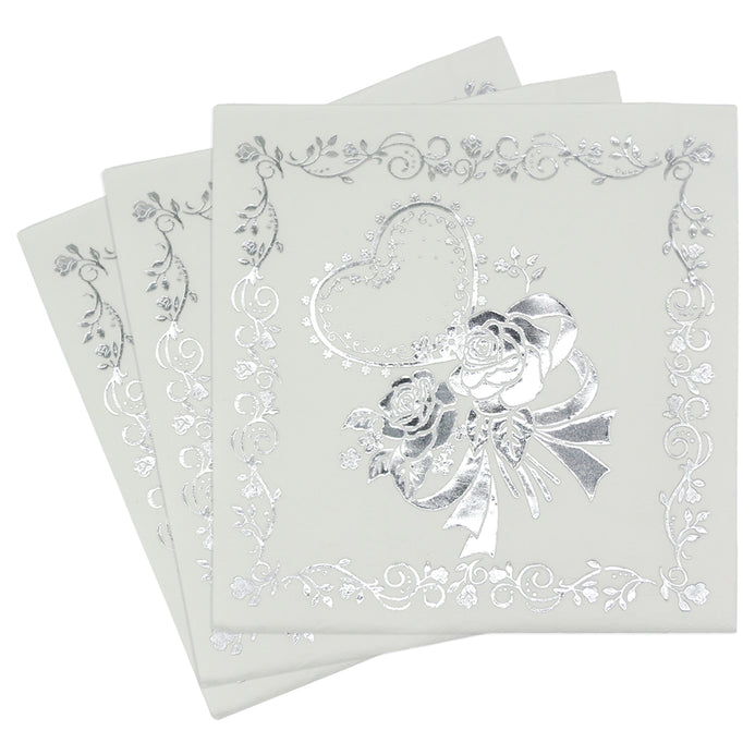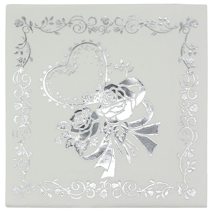 Servilleta Metalizadas Corazon Rosas Plata x20