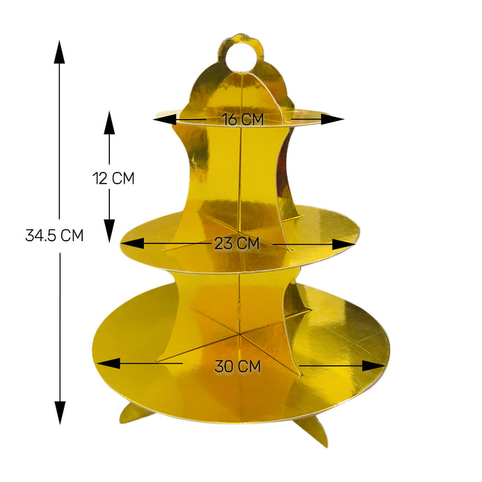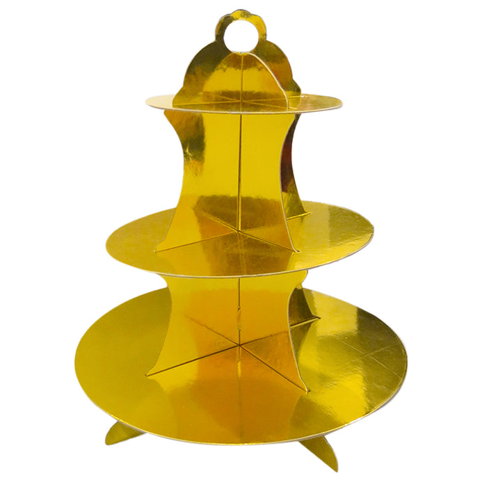 Base Soporte de Cartón Metalizado para Cupcakes 3 Niveles