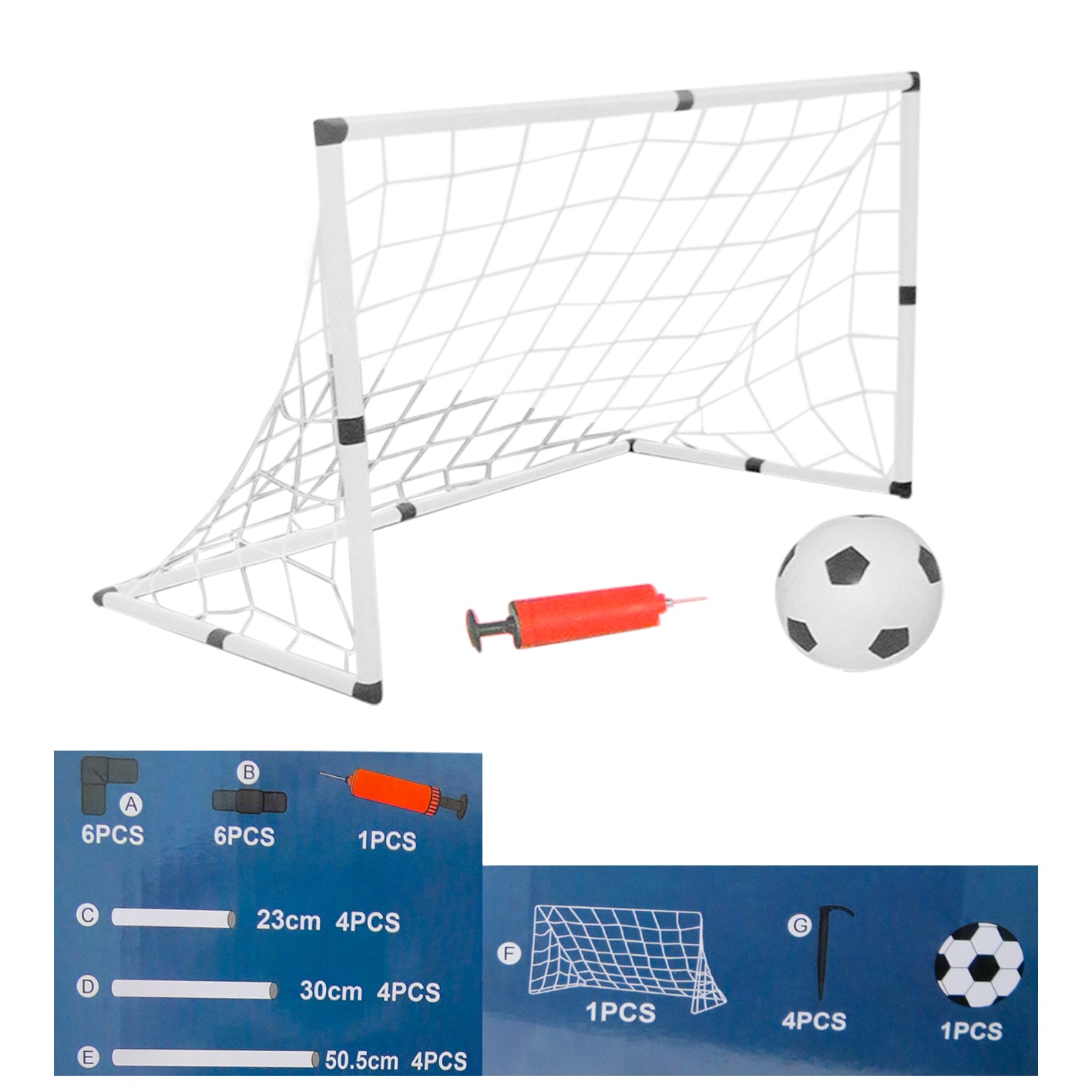 Dimensiones del producto: la portería de fútbol mide 108,5 cm x 53,5 cm x 67,5 cm, con un tamaño de balón de 7,5 cm, lo que proporciona un amplio espacio para que varias personas participen en entrenamientos o partidos de fútbol simultáneamente, mejorando la diversión del juego.