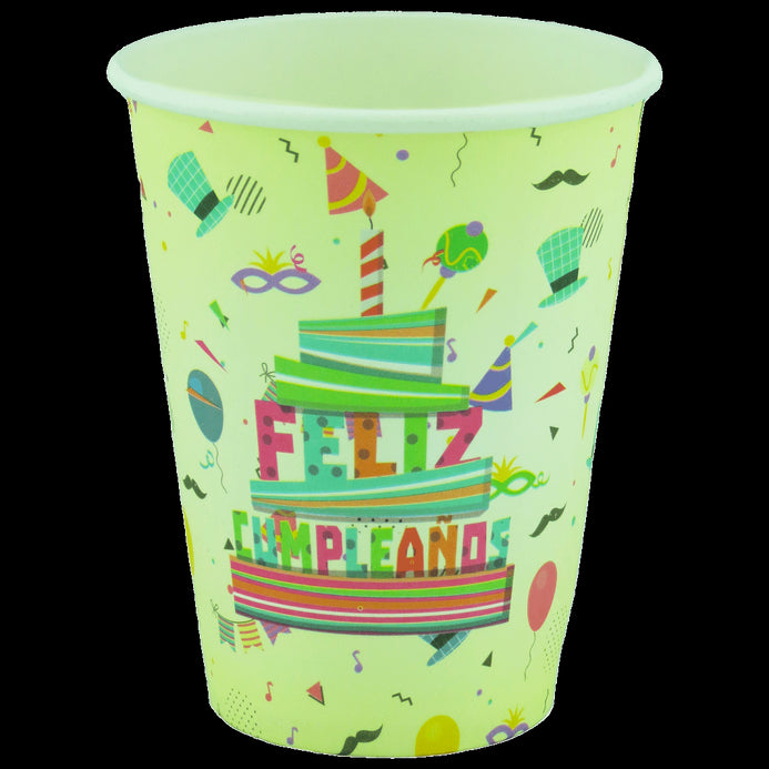 Vaso Carton Feliz Cumpleaños 9 Onzas Amarillo x12
