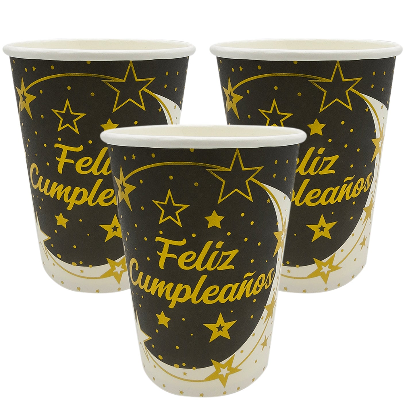 Vaso Cartón Metalizado Feliz Cumpleaños 9 Onzas x12