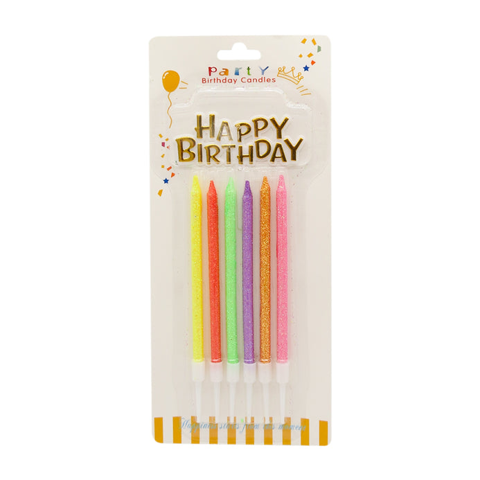Velas Neón Happy Birthday Larga por 6 Unidades